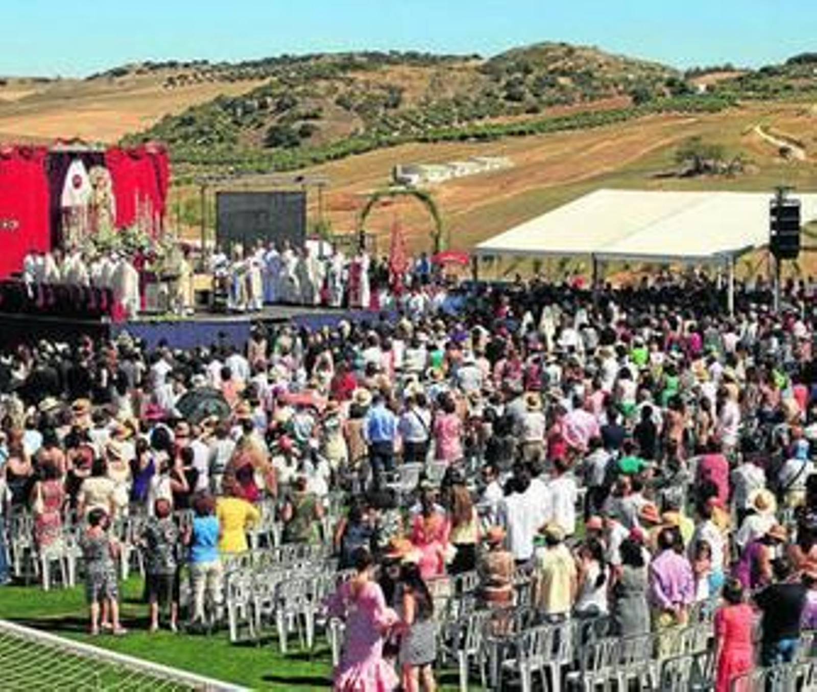 La coronación canónica de la Virgen de Caños Santos contó ayer con una masiva presencia de fieles, unos 3.000, que se dieron cita a las 11:00 en el campo de fútbol de Cañete la Real, que había sido habilitado para acoger el evento. Bajo un sol abrazador, que hizo que muchos de los asistentes buscasen cualquier tipo de fórmula para tratar de mitigar sus rayos, el obispo de Málaga, Jesús Catalá, fue el encargado de oficiar la ceremonia, acompañado por casi una veintena de sacerdotes en el altar situado en un escenario que estaba presidido por la imagen de Nuestra Señora de Caños Santos.