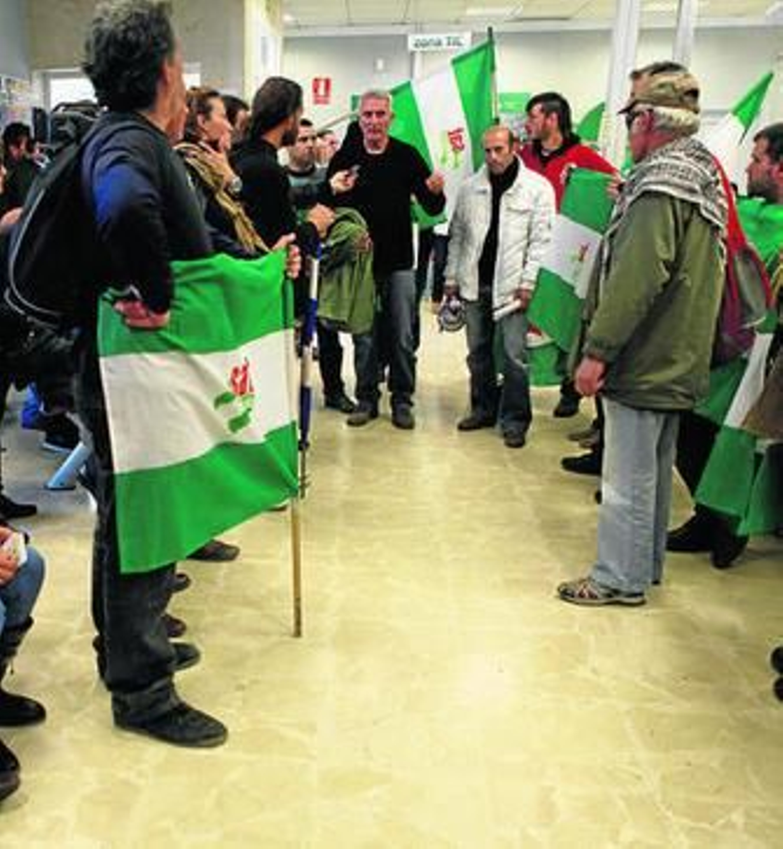 Al grito de "contra el capital huelga general" o "los recortes al PP a la altura de la nuez", un grupo de unos 150 militantes y simpatizantes del Sindicato Andaluz de Trabajadores (SAT) ocuparon ayer durante casi dos horas las oficinas del Servicio Andaluz de Empleo (SAE) que se encuentran situadas junto a la barriada El Fuerte para reclamar la eliminación de las peonadas para cobrar el subsidio agrario. Los sindicalistas entraron de forma pacífica en las instalaciones, bandera en mano, y con diferentes gritos contra el sistema capitalista, Gobierno central, Gobierno andaluz, PSOE, PP y todos "aquellos que permanecieran impasibles" sin sumarse a la lucha de los "obreros". Tampoco faltaron consignas contra los integrantes de la Casa Real, en especial, contra el duque de Palma, Iñaki Urdangarín.