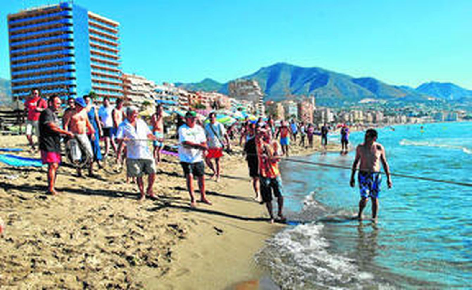Pescadores de la barriada fuengiroleña de Los Boliches rememoran dos veces al año la conocida como tira del copo, un arte de pesca tradicional que ahora está prohibido