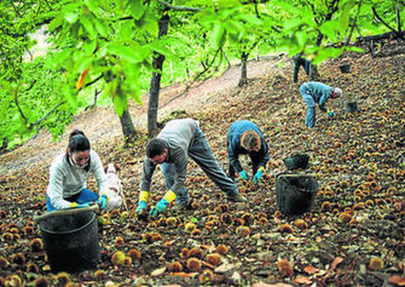 Los castañares del Valle del Genal siguen llenos de cuadrillas que recolectan las castañas de la zona, apurando los días para finalizar la recogida de este apreciado producto con el que se elaboran algunos manjares como el conocido marrón glasé.