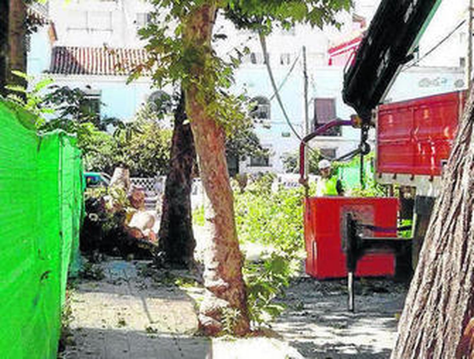 Después de más de 60 años la calle Notario Luis Oliver de Marbella lucirá sin uno solo de los 63 árboles que la adornan. El Ayuntamiento arrancó ayer, lunes de Feria, la tala de los ejemplares para llevar a cabo la remodelación de la calle en cuestión.
