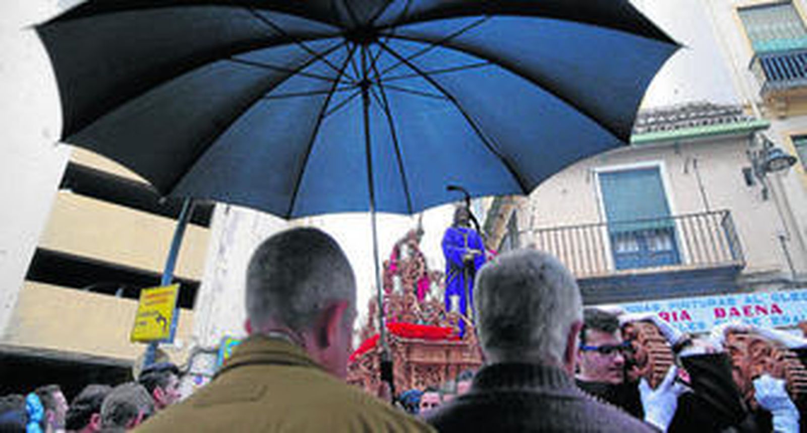 ESTA crónica de Domingo de Ramos empieza el Sábado de Pasión. A primera hora de la tarde, los hombres de trono que habían protagonizado por la mañana el traslado del Cautivo y la Trinidad, deslucido finalmente a causa de la lluvia, celebraban su gesta en la taberna El Repique, frente al Teatro Cervantes. Y he aquí que uno de los mozos, corpulento, ya entrado en años pero de admirable condición física, se asomó al balcón del primer piso del local y, dirigiéndose a las masas, embriagado de ardor y oratoria como un Millán Astray pasado de rosca, lanzó a voz en grito: "¡Viva María de la Santísima Trinidad Coronada!" Y el "¡Viva!" que respondieron en consecuencia tanto quienes daban cuenta del almuerzo como quienes pasaban justo entonces por la calle bastó para sacarle dos lagrimones al nuevo busto de Manuel Alcántara que preside el Salón de los Espejos del Ayuntamiento. Tal fue, sin remedio, el gesto fundacional de la Semana Santa malagueña, arrobado por el éxtasis, pues es ahí, en la cima donde la razón entrega la cuchara, donde toda esta idolatría tiene sentido y lo pierde por completo. Inmediatamente, como guiados por la precisa voz del capataz, los hombres de trono se levantaron de sus sillas y empezaron a emular en sus puestos el movimiento con el que mecen los tronos en los varales, izquierda, derecha, izquierda. Algunas horas después, muy cerquita, en la calle Cárcer, los mismos héroes mostraban un perfil notablemente más bajo, cuales sopistas en retirada, seguramente a consecuencia de un café demasiado prolongado. Pero así es el éxtasis: únicamente admite una entrega sin concesiones. Como vino a decir Confucio: o estamos en lo que estamos, o no estamos en lo que estamos. Ocurre, sin embargo, que los fenómenos de mayor envergadura son a la vez los más frágiles, pero es esta debilidad la que los hace grandes. Con un simple chaparrón, semejante ascenso del corazón queda contrariado, deslucido y cabizbajo; y ayer, después de un invierno que no ha sido tal, la primavera decidió ser más primavera que nunca y regaló un Domingo de Ramos en claroscuro, con chubascos y tránsitos del sol más cálido, entre sombras y luces discretas. Las consecuencias no gustaron a nadie: Humildad y Paciencia, Dulce Nombre y Humildad regresaron a sus templos (la tercera lo hizo apenas poner el pie en el Compás de la Victoria) ante la inclemencia, mientras que Huerto, Salutación, Salud y Prendimiento procesionaron por la tarde con retraso con tal de despistar al infortunio. Por la mañana, la Pollinica y Lágrimas y Favores, que recortó el trayecto previsto, aligeraron el paso a pesar del suelo mojado para evitar que sus titulares quedasen dañados. Pero no faltaron las dosis de contraste que hacen de la Semana Santa una experiencia única a pie de calle: Málaga se reivindica en el éxtasis y cada uno procura estar a la altura como puede. El resultado, en todo caso, es un espectáculo proverbial.
