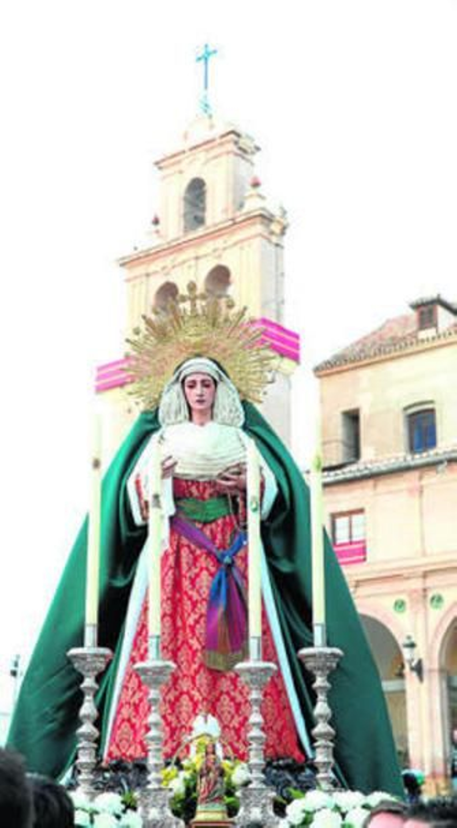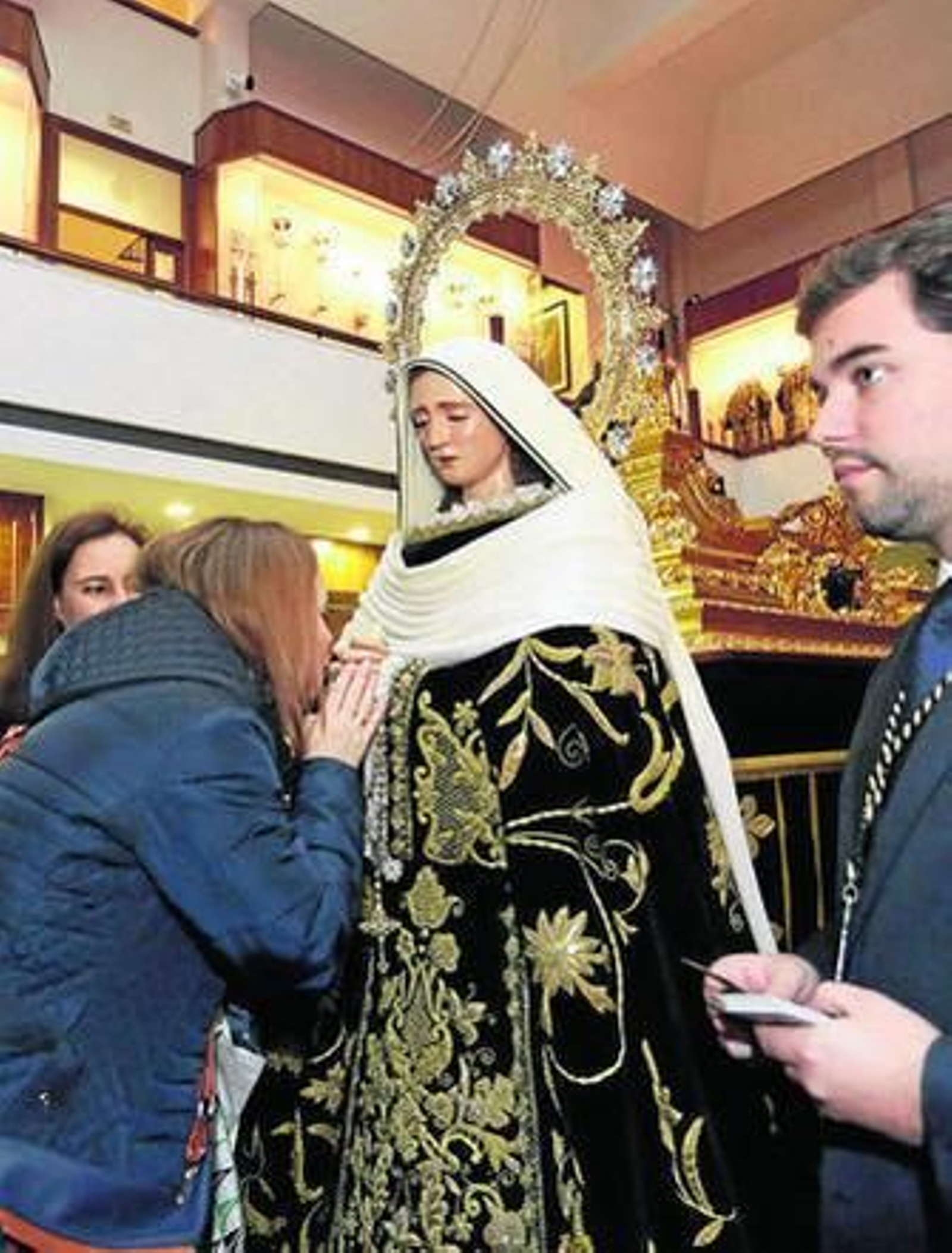 En el Perchel también esperaban que Nuestro Padre Jesús de la Misericordia, su 'Chiquito', y Nuestra Señora del Gran Poder saliesen de la iglesia del Carmen para bendecirlos en una ruta más íntima y acotada. El Señor sobre su peana de carrete y la Dolorosa en su trono de traslado recorrieron algunas calles para volver a su casa hermandad, anexa al templo.