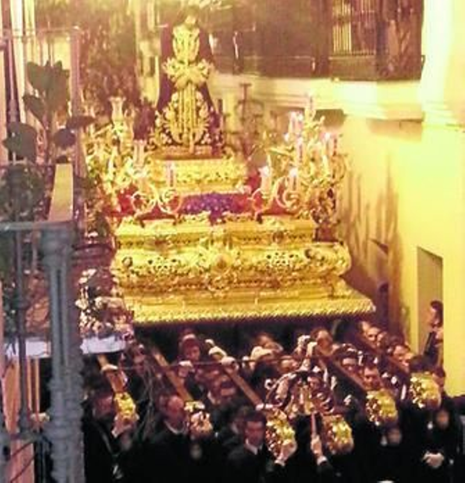 CINCO cofradías son la que anoche se pusieron en las calles de Vélez abarrotadas por el público. La capital de la Axarquía vivió su particular madrugá con los Estudiantes, Tercera Caída, Humildad, Rico y la Esperanza. Alfombra de romero y esplendor al paso a cada una de estas hermandades que cuidan con esmero el cortejo procesional desde su salida al encierro. Es el caso de la Cofradía de Nuestro Padre Jesús Atado a la Columna y María Santísima del Rosario en sus Misterios Dolorosos conocida popularmente como Estudiantes. Soberbia salida desde San Juan la de este Cristo de Sánchez Mesa. La túnica marrón franciscana de los horquilleros que portan este trono de estilo renancentista en caoba y alpaca sobrecoge a los fieles que se congregan en el entorno de la plaza de la Constitución. Como es tradicional, durante todo el recorrido no faltaron los sones del himno universitario Gaudeamus Igitur. Bella estampa a su paso por la plaza de San Juan de Dios y de Jesús de la Sentencia.