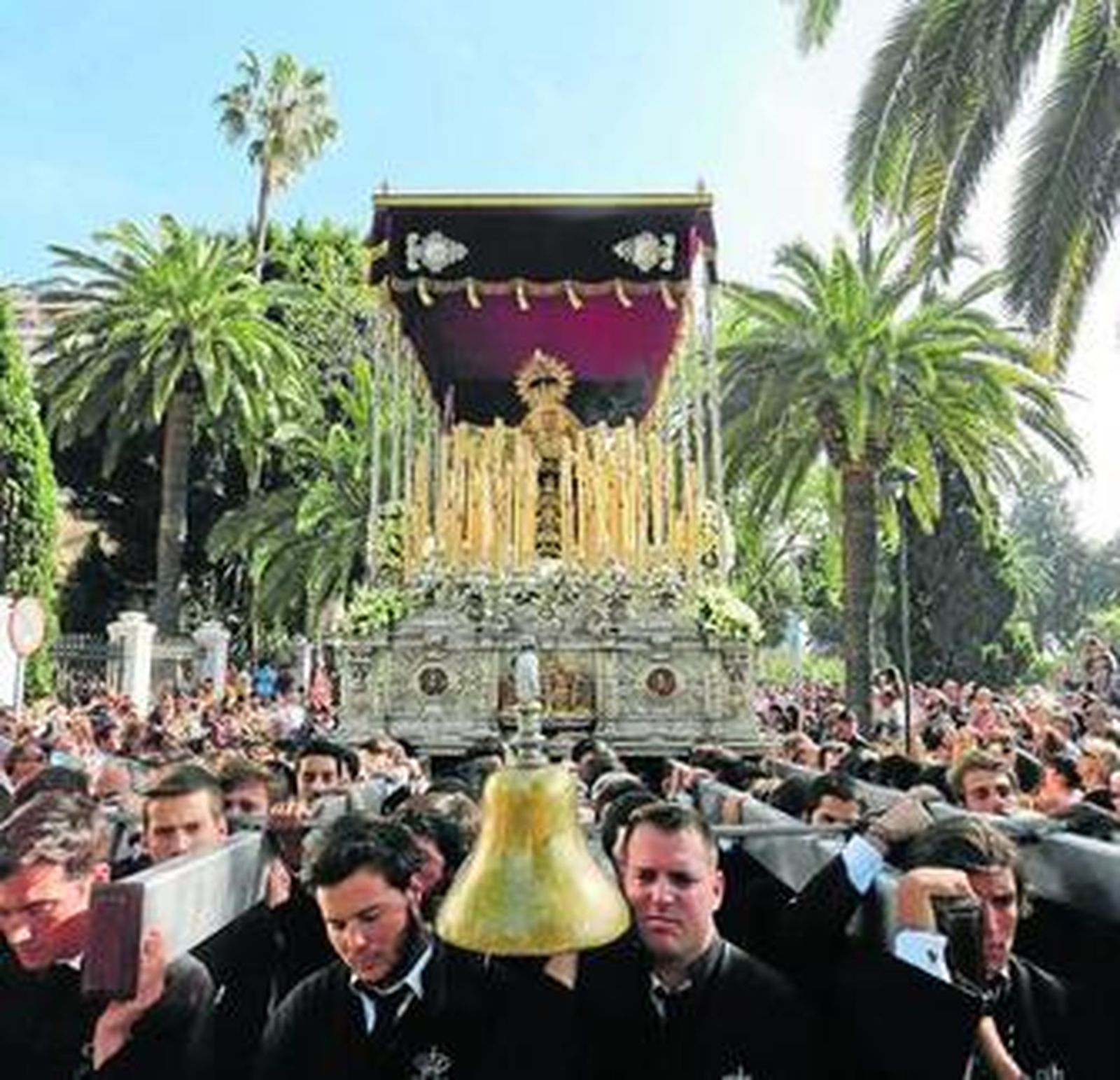 La Trinidad volvió a ser protagonista con la Soledad de San Pablo, el Santo Traslado que acontece en el mismo origen de Málaga, el punto exacto, hoy colmado de desplome, en el que fenicios e íberos pactaron hace 2.800 años las bases para hacer del entorno una ciudad costera. Y así, a pulso, desde el mismo comienzo de todas las cosas, tomó Nuestra Señora de la Soledad a Málaga sobre sus propios hombros, como si todo fuese digno de ser contado, mecida por la Sinfónica de la Trinidad en el ajuste de cuentas con el pasado que es el Puente de la Aurora, reducto presuntamente intacto de una ciudad que hace mucho dejó de existir. Antes había ganado el Cristo del Amor el afecto de los suyos, con el Ubi Caritas entonado como una utopía mientras dos vecinos amenazaban con llegar a las manos en Fernando el Católico a cuenta de un fragmento de bordillos que reivindicaban ambos como si de una guerra fronteriza se tratase. Pero la Virgen de la Caridad, en su admirable cadencia, puso las cosas en su sitio y llenó la tarde de aromas y puentes a realidades más elevadas. La salida de la Piedad en el Molinillo, en su disposición breve y fugaz, constituye siempre una oportunidad al hallazgo: entre ojos ancianos de conmovedora inclinación a la lagrimita, mozalbetes magrebíes arrimados al jaleo con los brazos cruzados, señoras con cucurucho de turrón, parejitas pródigas en arrumacos y familias acomodadas de carácter ejemplarizante, el trono atravesó otra de las áreas donde Málaga es frontera, olvido, surco, cantecito de adolescentes en el escalón de un portal, solar y ruina para llenarlo todo de negro rigor y mayor desconsuelo. La Piedad es, en su barrio, una suerte de trampantojo: el observador adquiere la ilusión de estar en otro barrio, en otra ciudad incluso, merecedora de la atención de cualquier caminante, por la gracia y el efecto del único trono que la corona; pero, cuando pasa el mismo y todo parece caer al suelo como hojas en otoño, tan afilada percepción se desinfla y la desmemoria vuelve a acampar hasta el encierro.