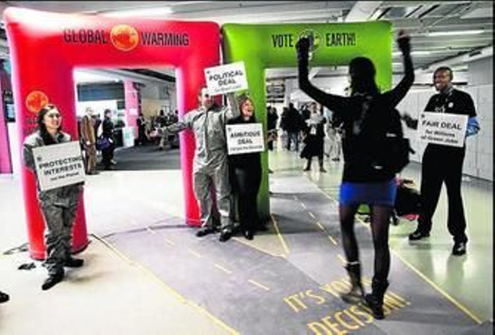 En medio del frío y la lluvia, una veintena de manifestantes y ecologistas se habían apostado en la entrada del centro de conferencias Bella Center para pedir resultados concretos en la cumbre. Por la tarde estaban previstas las actividades del foro alternativo Klimaforum con un programa de música, teatro, debates y exposiciones.