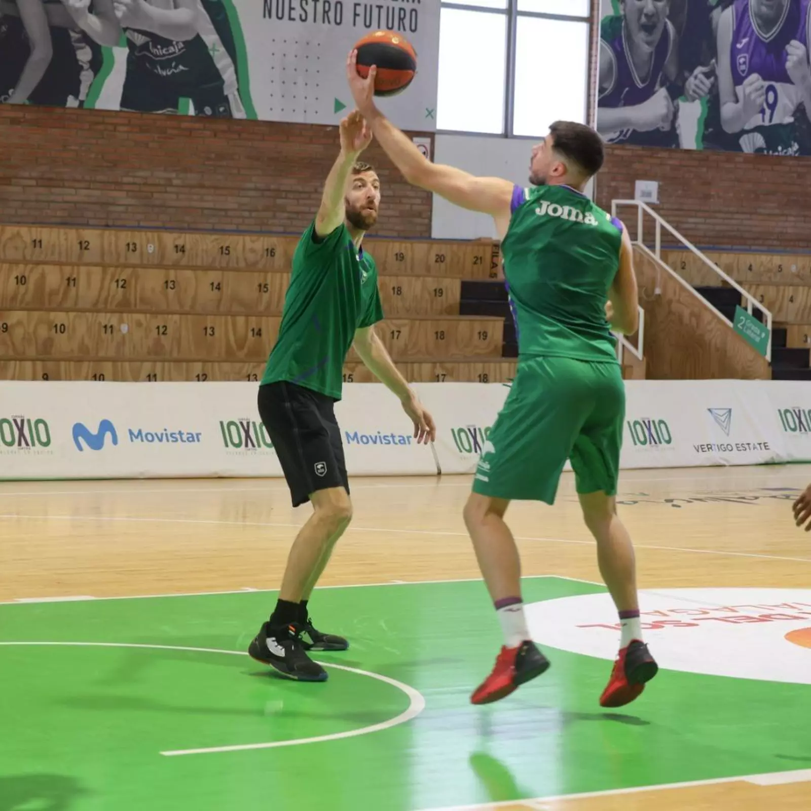 Las fotos de Fran Vázquez tutelando a los pívots del Unicaja